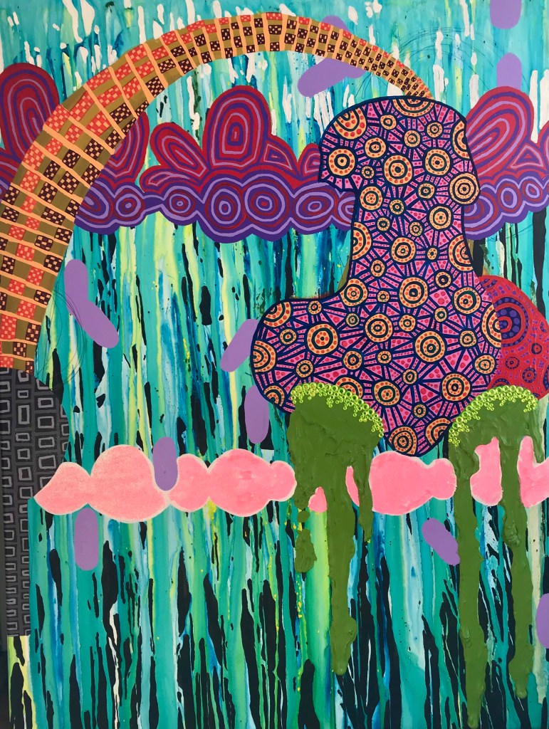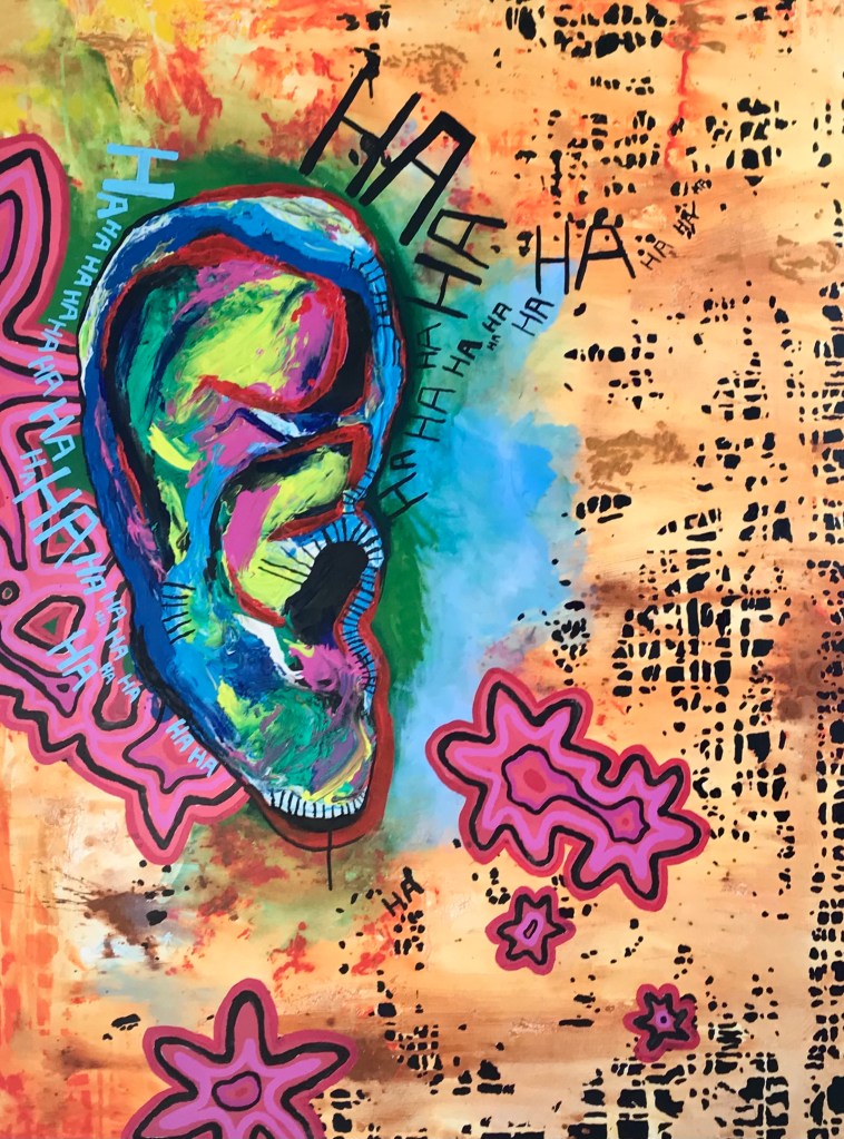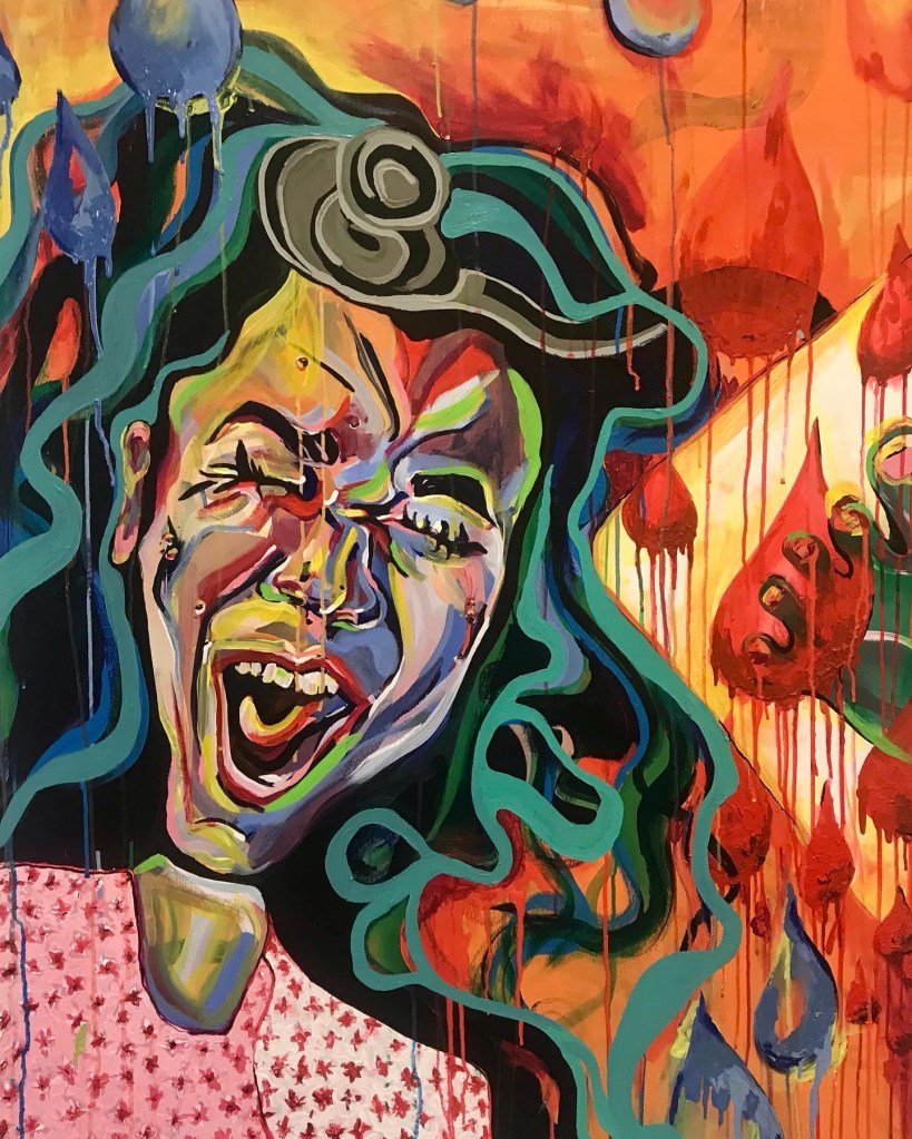Warning:This is Not Your Home, 2023, acrylic and gauzeFor the Love of Smell, 2020, acrylicLick, 2023, acrylic and rhinestonesWith Blood and Tears, 2020, Acrylic